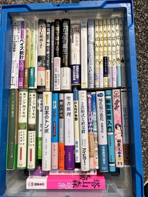 実用書、ビジネス書、歴史書、数学書や生き物、自然、植物、漫画、食事や健康に関する古書をお譲りいただきました。