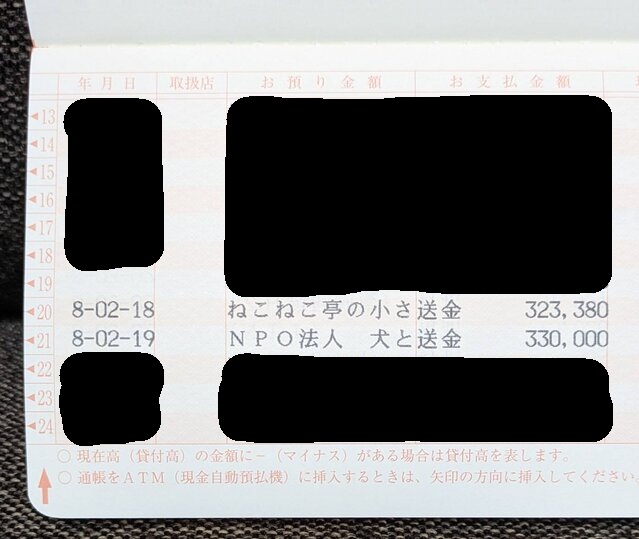 2/18に「ねこねこ亭の小さな命を守る会」さんにお振込みいたしました、誠にどうもありがとうございました!